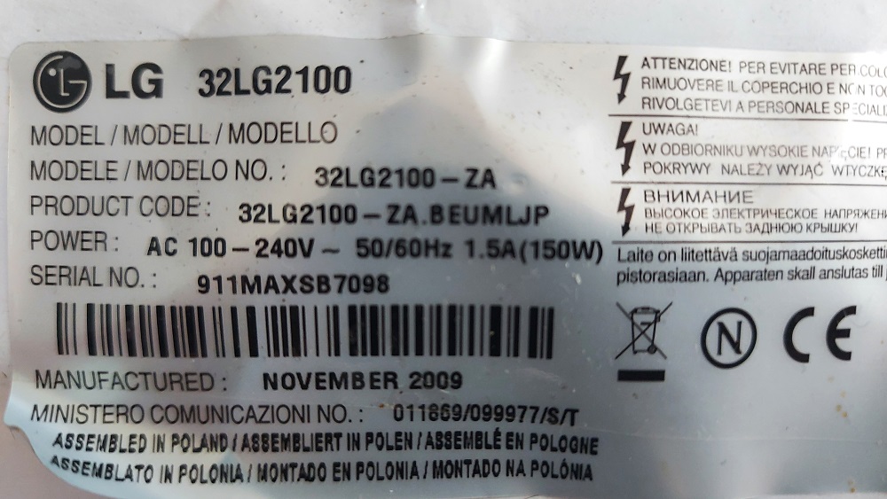 LG 32LG2100 CARTE MERE EAX60686904