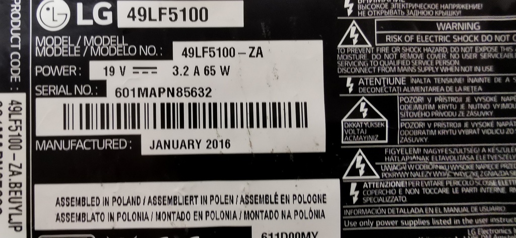 LG 49LF5100 CARTE MERE LD55C EAX66704203 1.0